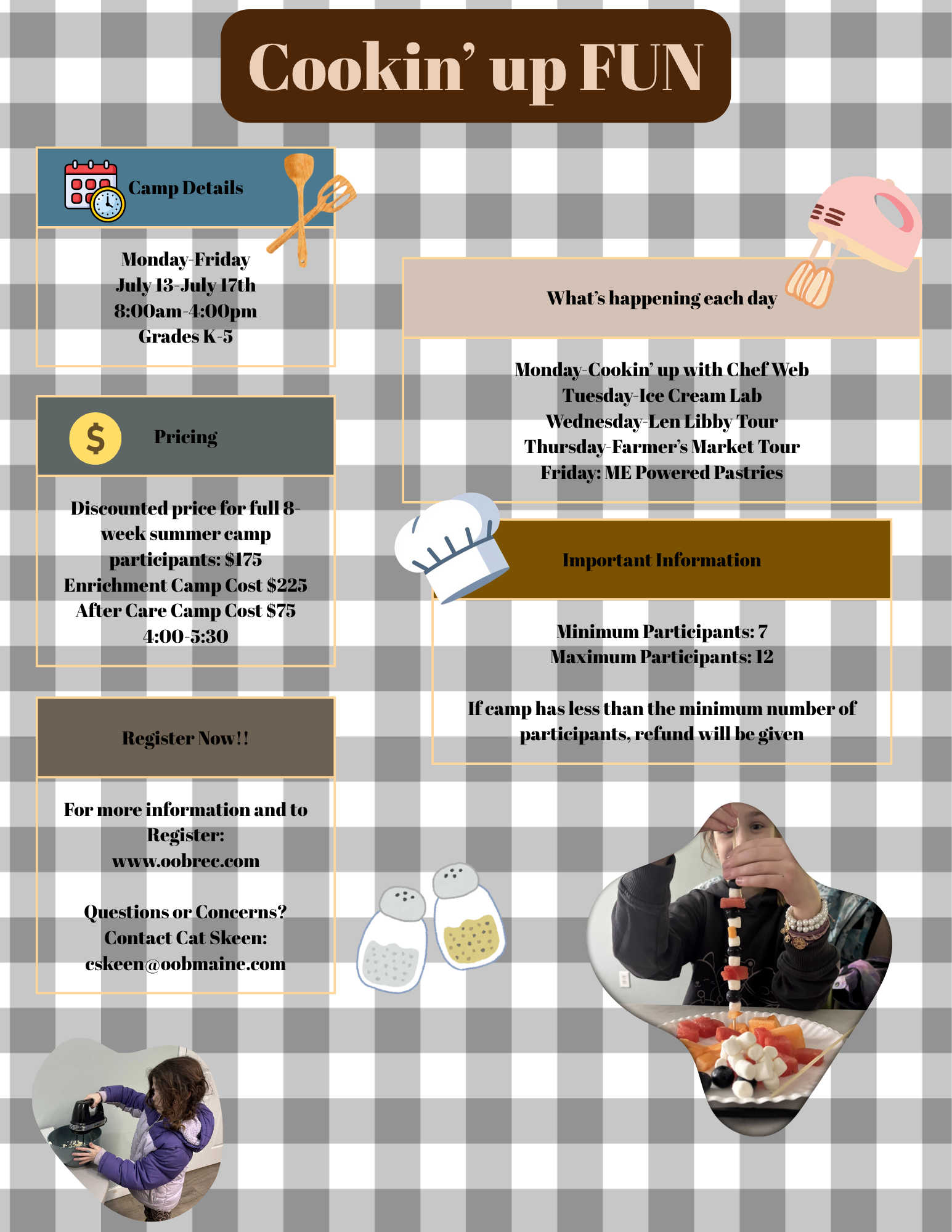 Campers will get hands-on in the kitchen, learning basic cooking skills while creating tasty treats throughout the week! From cooking with Chef Web, to making our own pizza & pastries, to touring the Len Libby Chocolate Factory, this week is sure to be a TREAT! Whether your child is a budding chef or just a young foodie, this camp serves up creativity, confidence, and plenty of yummy fun!