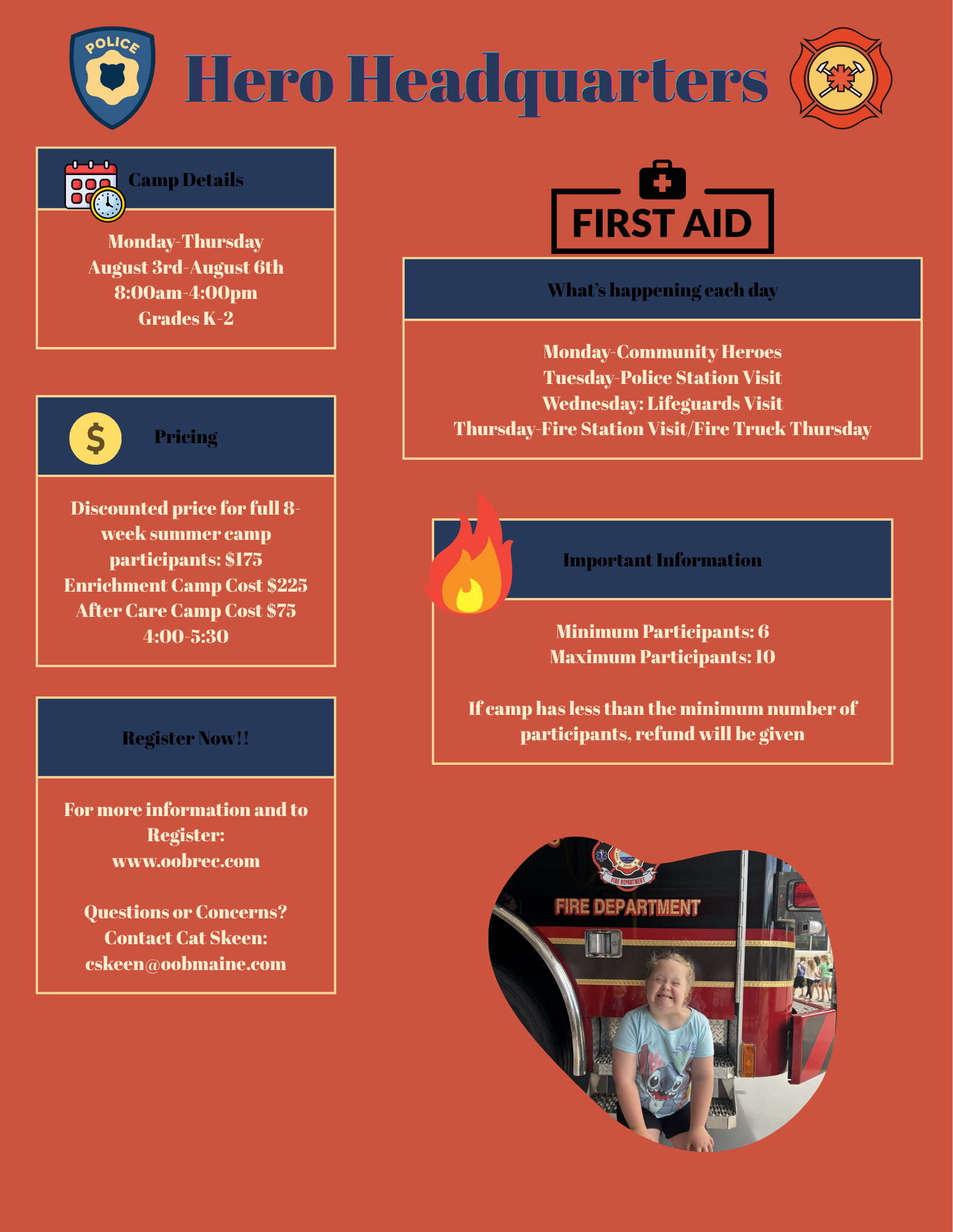 Campers will meet and learn from community heroes like police officers, lifeguards, and firefighters! With behind-the-scenes visits and interactive experiences, kids will discover what it takes to keep a community safe! This inspiring week is packed with learning, excitement, and hands-on fun!